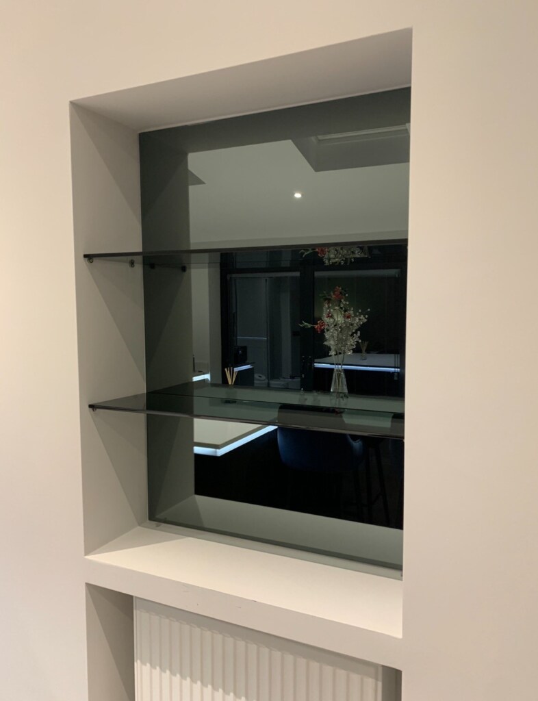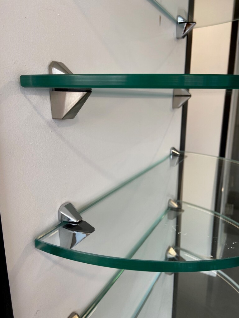 Glass shelves and table tops are available in various glass thicknesses from 4mm up to 19mm. All glass shelves and table tops are made to order to your specific requirements and are finished with polished edges.